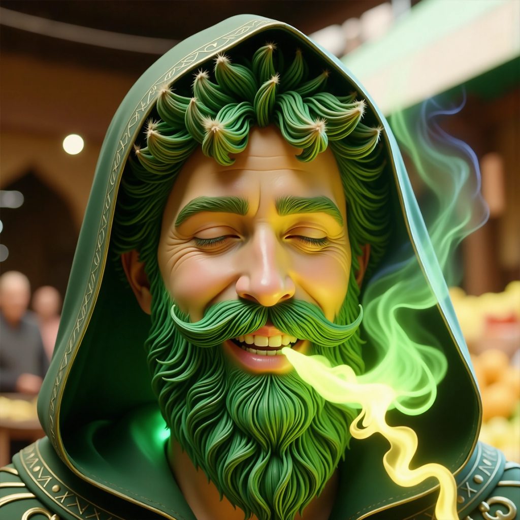 Maestro Puff hizo una exhalación y el comerciante inhaló el vapor verde que salía de su boca. Repitió: “¿Qué tipo de caballo eres tú?”